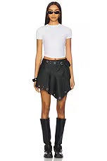 So cool with moto edge, this bold skirt from our We The Free collection features a buttery vegan leather fabrication with wrap silhouette, asymmetrical piecing, and grommet hardware for added dimension.