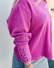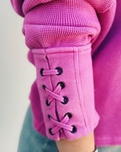 Laced up cuffs and and gathered sleeves elevate a staple top made from cozy cotton.